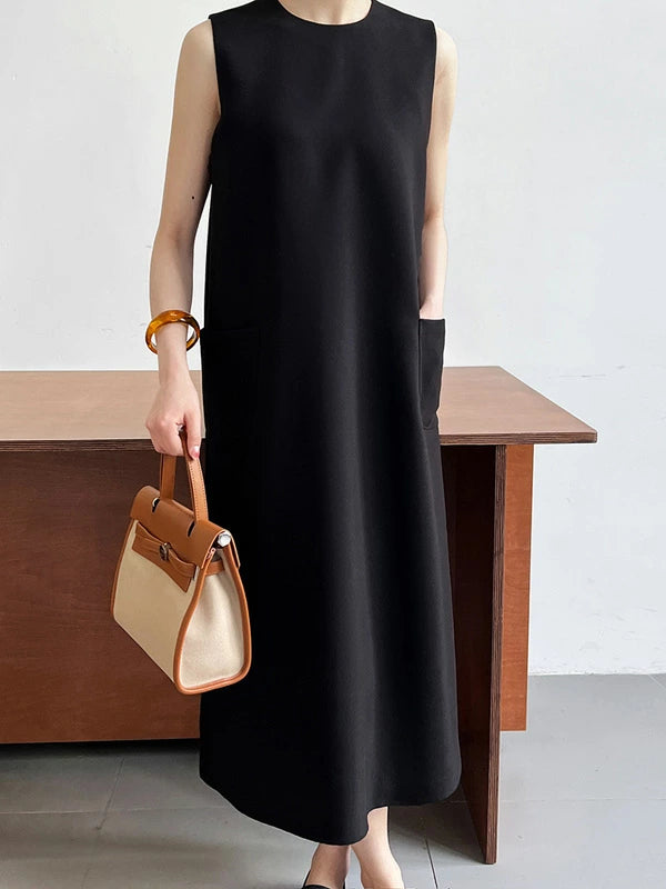 ゆるやかなAラインシルエットのノースリーブワンピース。