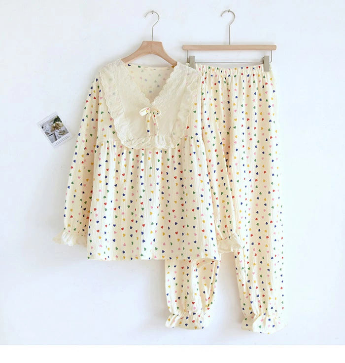 カラフルなハート柄×繊細なレースが可愛いプリンセス風パジャマ♪