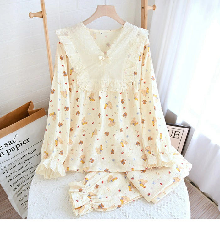 レディース ウィメンズ 女性用ファッション トップス ボトムス セットアップ パジャマ 部屋着 寝間着 寝巻き パジャマ ルームウェア ナイトウェア ガーリー フレンチガーリー フェミニン 韓国風 カジュアル レース フリル リボン プレゼント ギフト M L XL